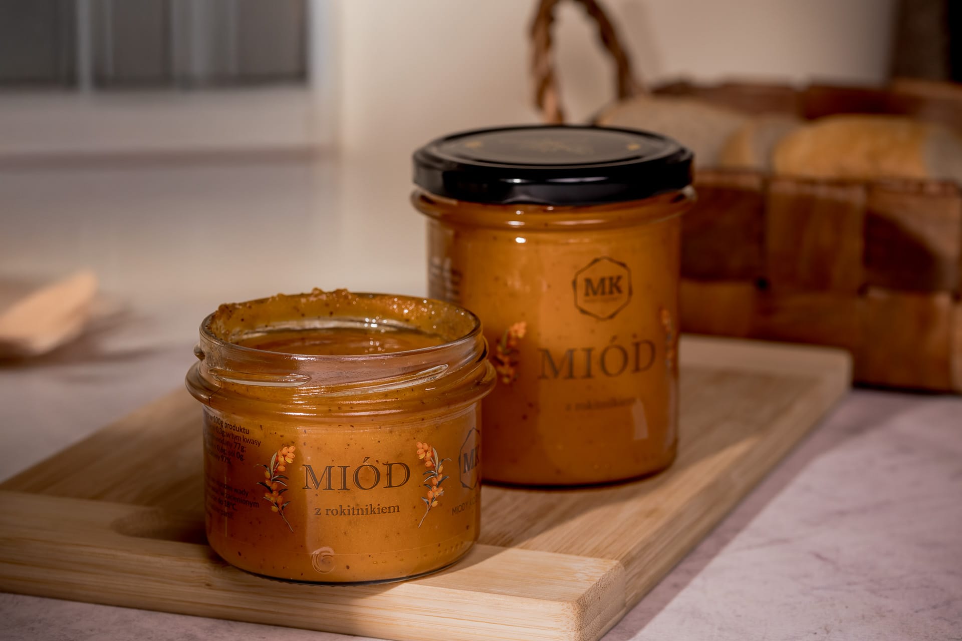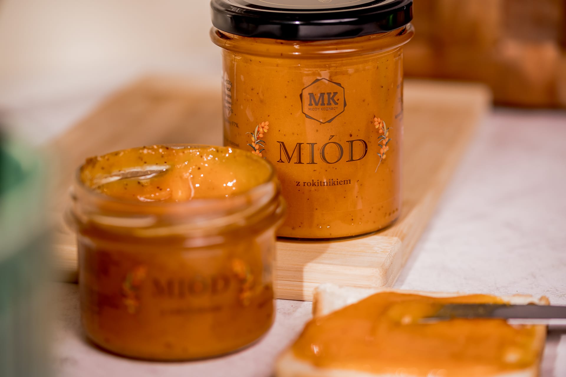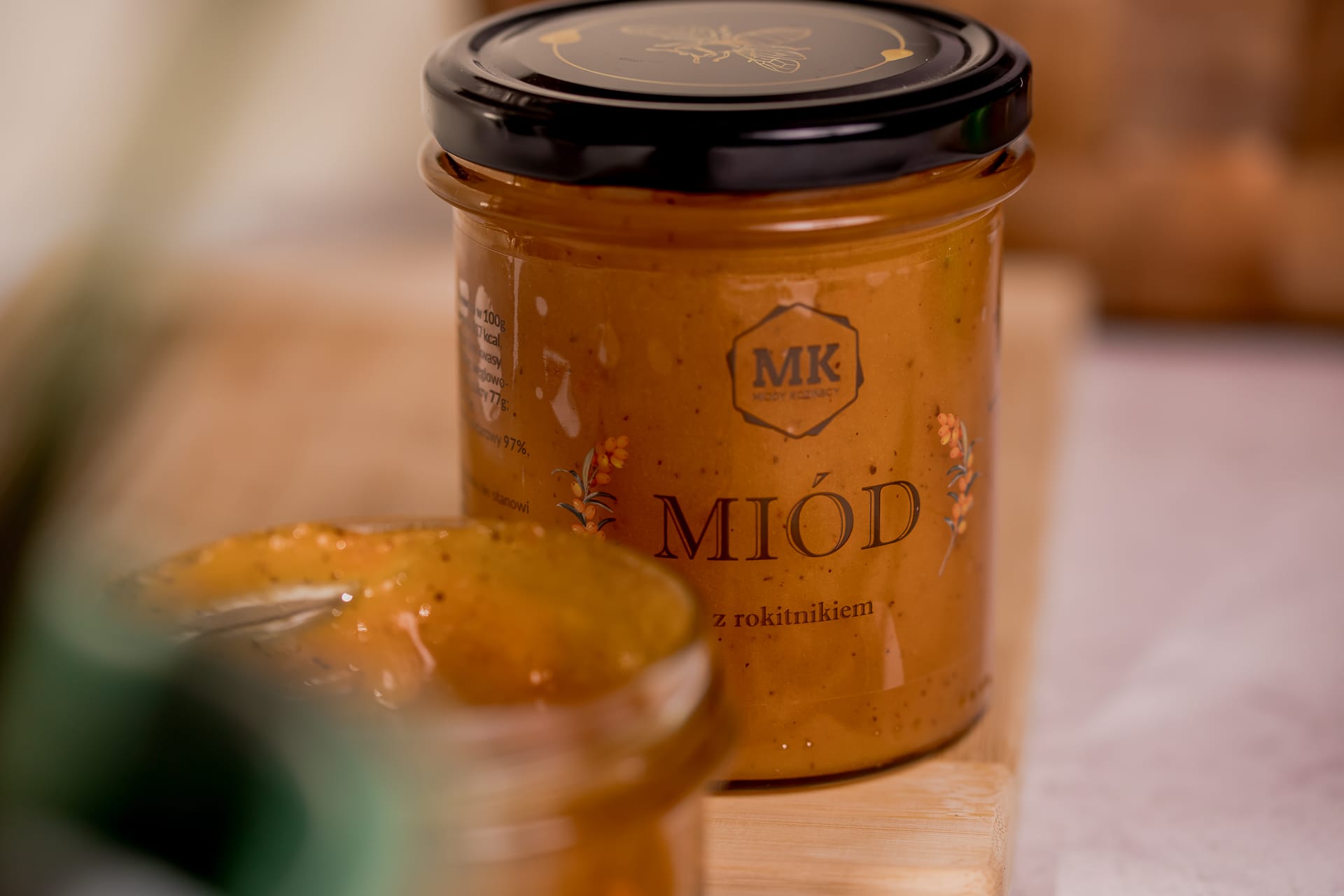 Nasz miód z rokitnikiem świetnie komponuje się z herbatą, lemoniadą a również do jedzenia solo.